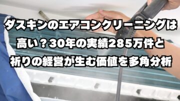 ダスキンのエアコンクリーニングは高い?30年の実績285万件と祈りの経営が生む価値を多角分析 「ダスキンのエアコンクリーニングは他社より高いけど、何が違うの?」「老舗の大手企業だけど、実際のサービス品質は?」――そんな疑問をお持ちではありませんか? ダスキンは、1963年創業のハウスクリーニング業界最大手であり、エアコンクリーニング実績285万件以上、30年以上の歴史を持つ老舗企業です。壁掛けエア…