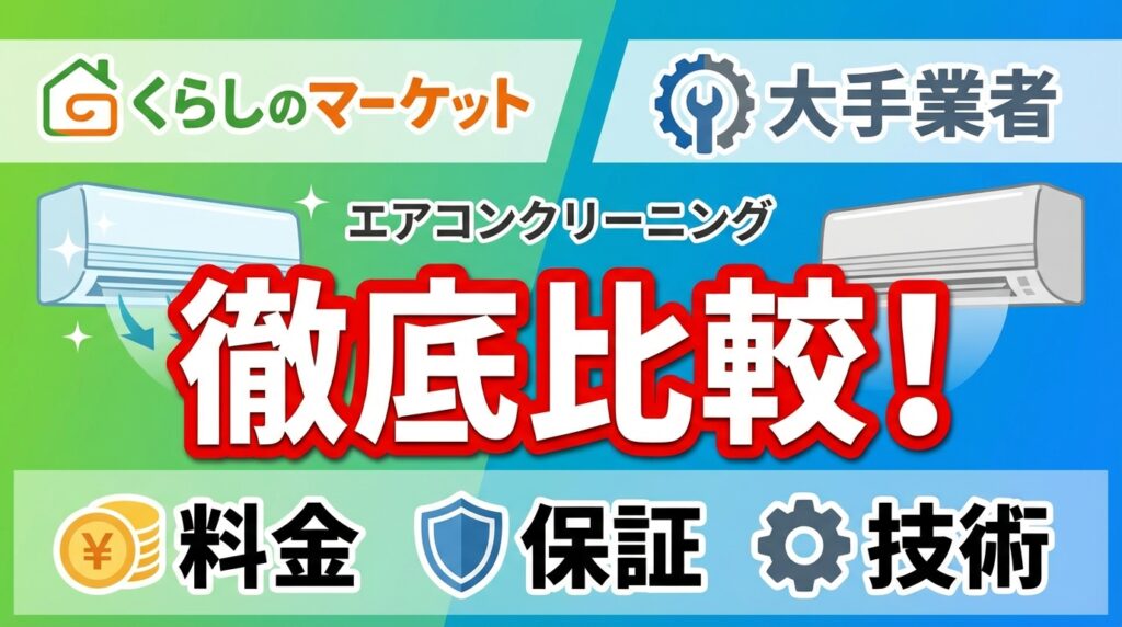 この記事では、エアコンクリーニングにおけるくらしのマーケットと大手業者を、料金・保証・技術力・トラブル対応の4軸で比較しました。