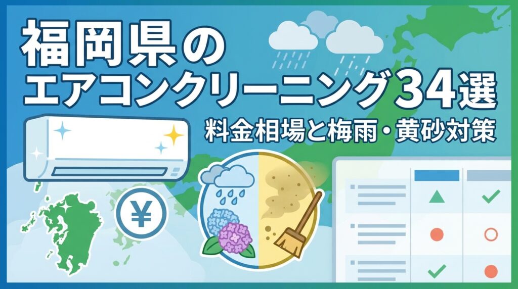 福岡県は九州最大の都市・博多を擁し、玄界灘から内陸の筑後平野まで多様な気候が広がる地域です。梅雨の時期は高温多湿が続き、エアコン内部にカビや雑菌が繁殖しやすい環境が生まれます。さらに春先には中国大陸から飛来する黄砂がフィルターや熱交換器に蓄積し、冷暖房の効きが悪くなるだけでなく、悪臭や健康被害の原因にもなりかねません。「梅雨が明ければ大丈夫」と思われがちですが、じつは梅雨入り前のクリーニングこそが重要です。湿気が加わる前に汚れを取り除いておくことで、カビの爆発的な繁殖を防ぐことができます。この記事では福岡県内の信頼できるエアコンクリーニング業者を北九州市・久留米市・飯塚市など主要エリア別にまとめて紹介します。