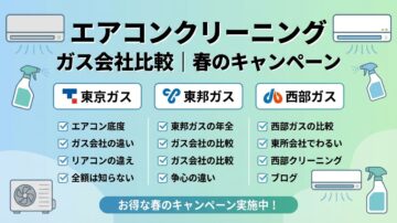 春はエアコンクリーニングのキャンペーンが出やすい時期ですが、ガス会社系のサービスは対象地域も条件も会社ごとに異なるため、意外と比較しにくいものです。特に東京ガス・東邦ガス・西部ガスは知名度が高く安心感がありますが、割引率だけで判断すると見落としが出やすい点には注意が必要です。 東京ガス・東邦ガス・西部ガスの2026年春キャンペーンの違い 価格だけでなく、対象地域・申込条件・使いやすさを含めた比較ポ…