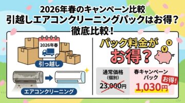 引っ越しのエアコンクリーニングはパックがお得?春キャンペーン比較2026 春の引っ越しや新生活準備では、エアコンクリーニング単品だけでなく、「まるごと掃除」や「新生活応援」系のパックも目に入りやすくなります。とはいえ、割引率だけで選ぶと、思ったほど得にならないケースもあります。 2026年春の主要キャンペーンで、単品割とパック割の違いがわかります 引っ越し前と引っ越し後、どちらで頼むと合いやすいか…