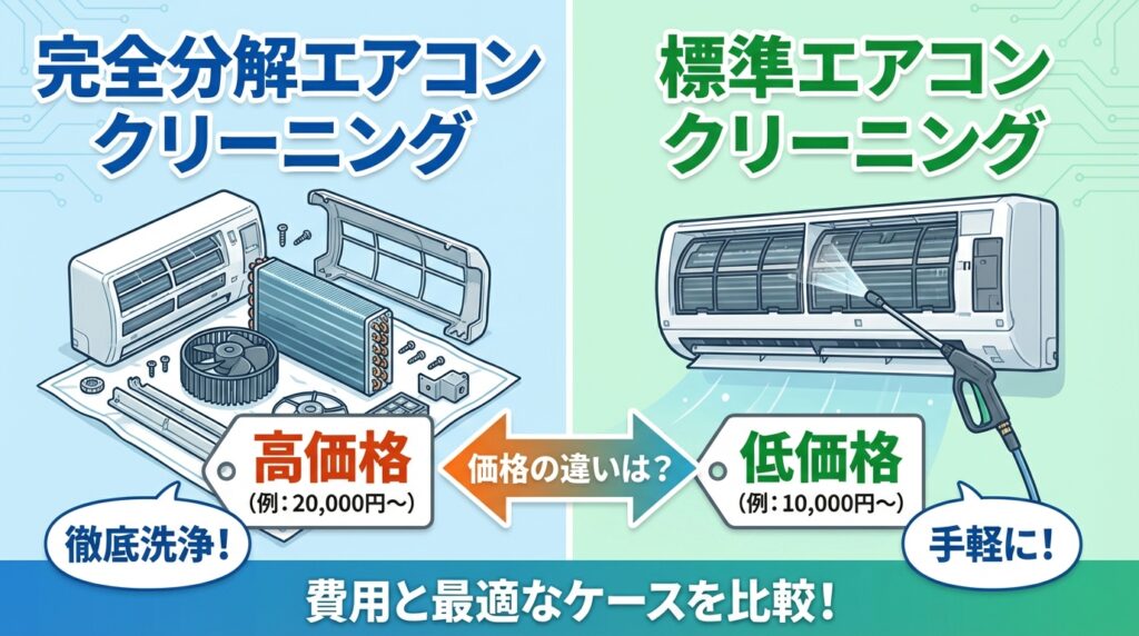 この記事では、エアコンの完全分解洗浄が通常分解よりどのくらい高いのか、どんな人に向いているのかを整理しました。