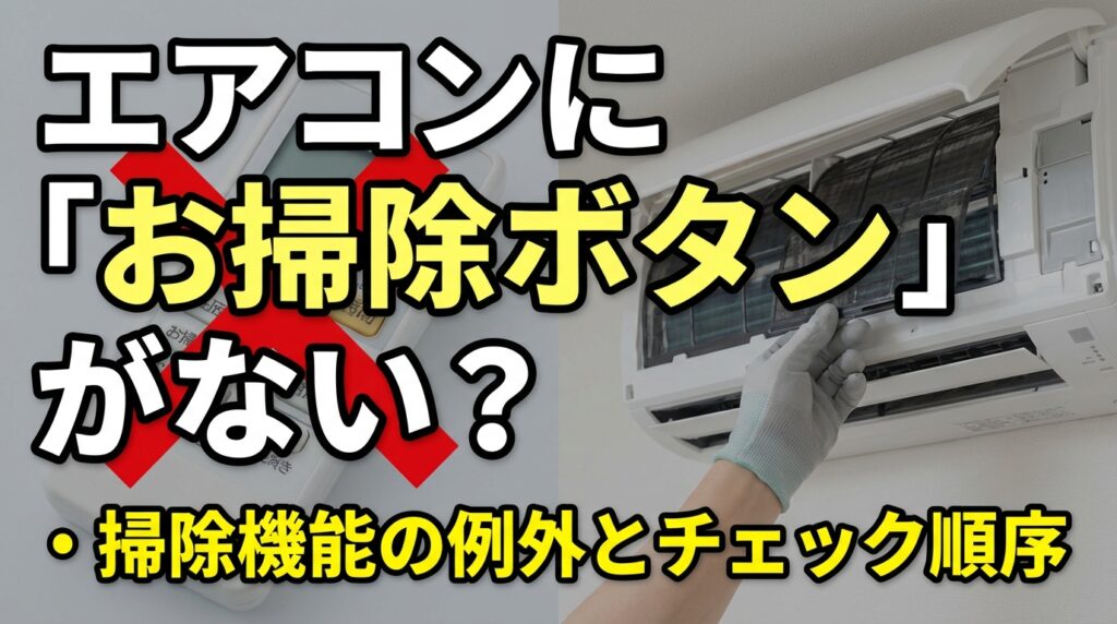 - 掃除ボタンが見えなくても非搭載とは限らない:カバー内・メニュー内・共通リモコンが誤判定の原因になります。