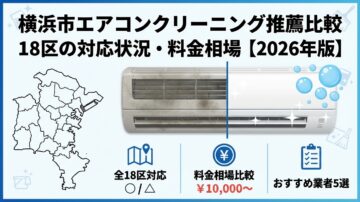 「横浜でエアコンクリーニングを頼みたいけど、業者が多すぎてどこを選べばいいかわからない」。そんなお悩みをお持ちではないでしょうか。 横浜市は政令指定都市の中でも全国1位の人口規模(令和5年時点で約376万人)を誇り、それだけエアコンクリーニング業者の数も多く、選択肢が豊富です。その反面、安易に選ぶと後悔するリスクもあります。 実は横浜市は18の行政区によって住宅環境も業者の対応状況もかなり異なりま…