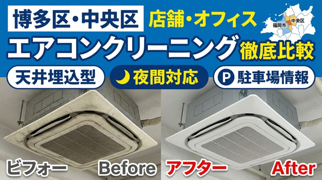 博多区・中央区の店舗/オフィス向けエアコンクリーニング比較|天井埋込・夜間対応・駐車場の見方